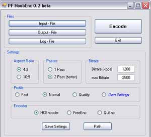 PF NoobEnc ist eine GUI für verschiedene MPEG 2 - Encoder wie HCEnc and QuEnc.